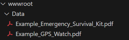 このテンプレートではEmbeddingはPDFに限られ、wwwroot\Data下にあるPDFの内容が対象となる。