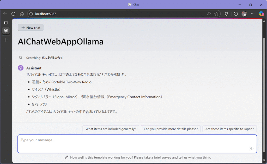 AIChatWebプロジェクトテンプレートをollamaで試してみた への1件のコメント